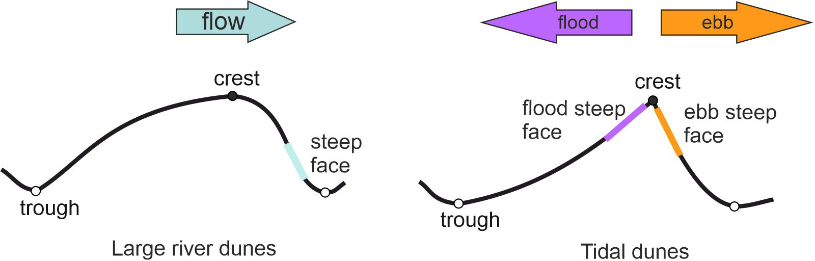 Figure 2Schematic representations of river and tidal dunes.