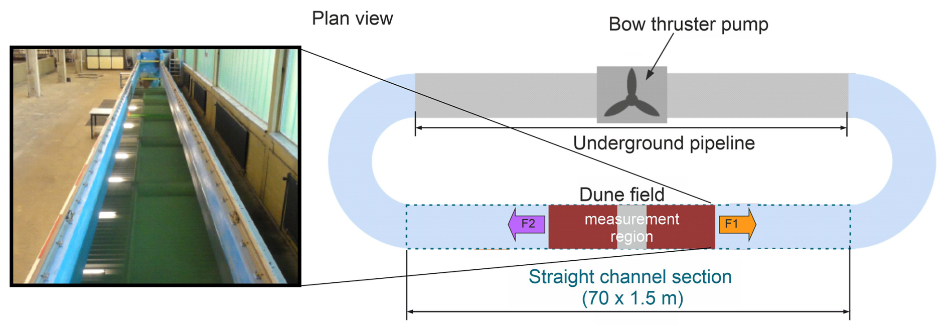 Figure 4Laboratory tidal dunes and experimental flume setup.
