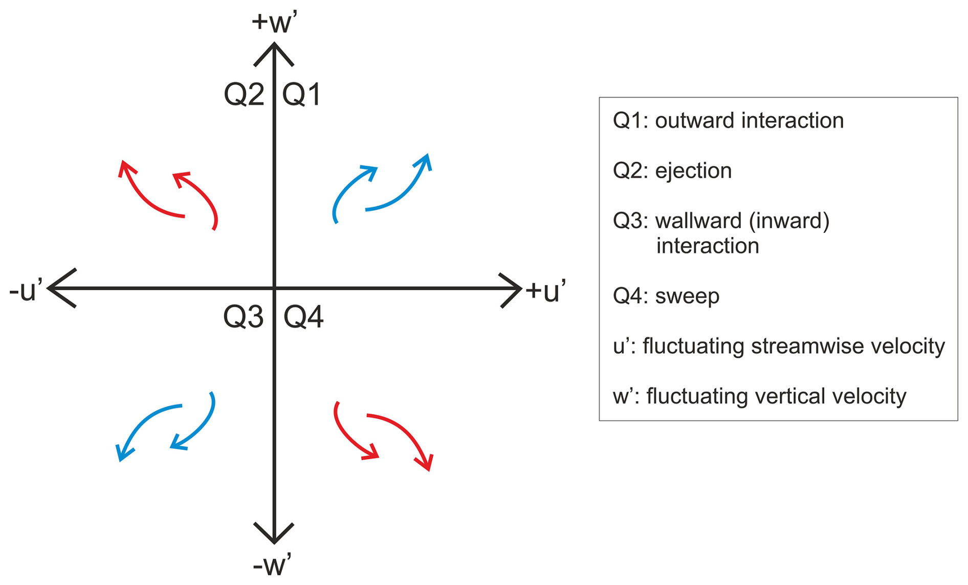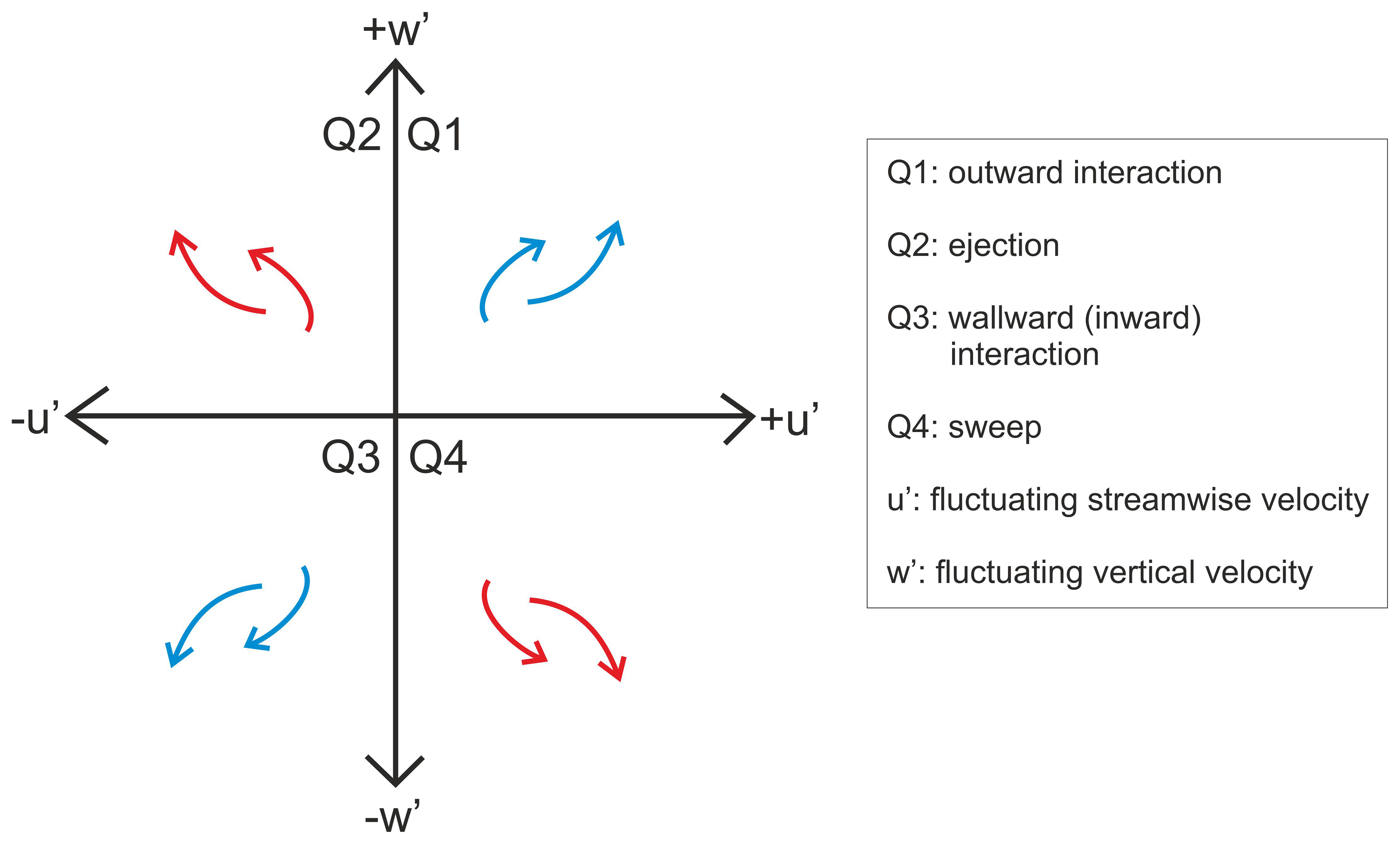 Figure 7Conceptual diagram showing the different quadrant events used to characterise turbulent events using quadrant analysis.
